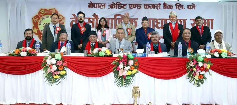 नेपाल क्रेडिट एण्ड कमर्स बैंक लिमिटेडको बार्षिक साधारण सभाले अध्यक्षमा उपेन्द्रकेशरी न्यौपानेलाई सर्वसम्मत रुपमा चयन गरेको छ ।