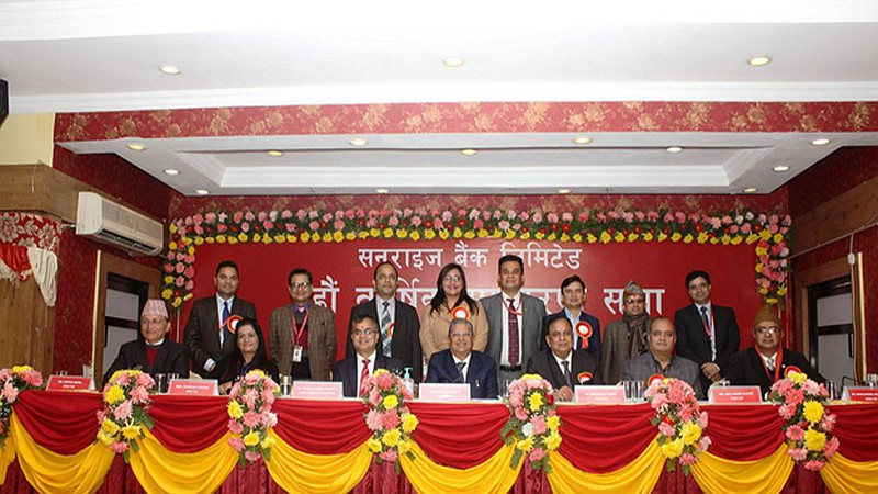 सनराइज बैंकको साधारण सभा आज शुक्रवार सम्पन्न भएको छ । सभाले ५ दशमलव ८ प्रतिशत बोनस शेयर र २ दशमलव ४८ प्रतिशत नगद लाभांश वितरण गर्ने प्रस्ताव पारित गरेको छ ।
