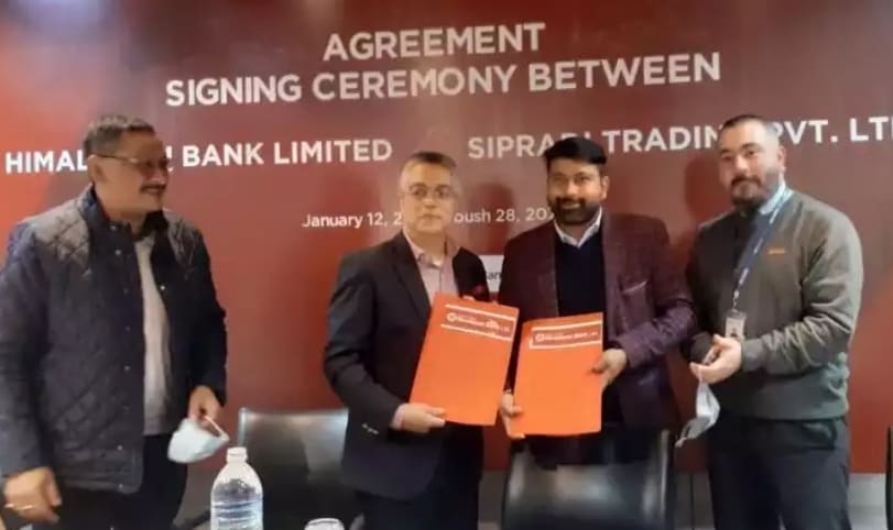 हिमालयन बैंक र सिप्रदी ट्रेडिङबीच सिप्रदीका ग्राहकहरुलाई टाटा मोटर्सको कमर्शियल र प्यासेन्जर गाडी किन्दा सहुलियतदरमा कर्जा उपलब्ध गराउने सम्बन्धी सम्झौता भएको छ ।