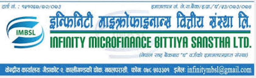 इन्फिनिटी लघुवित्तको आजदेखि सर्वसाधारणको लागि प्राथमिक शेयर ‘आइपिओ’ निष्काशन भएको छ । संस्थाले १०० रुपैयाँ अंकित दरमा कुल ६ लाख ७४ हजार कित्ता साधारण शेयर जारी गरेको